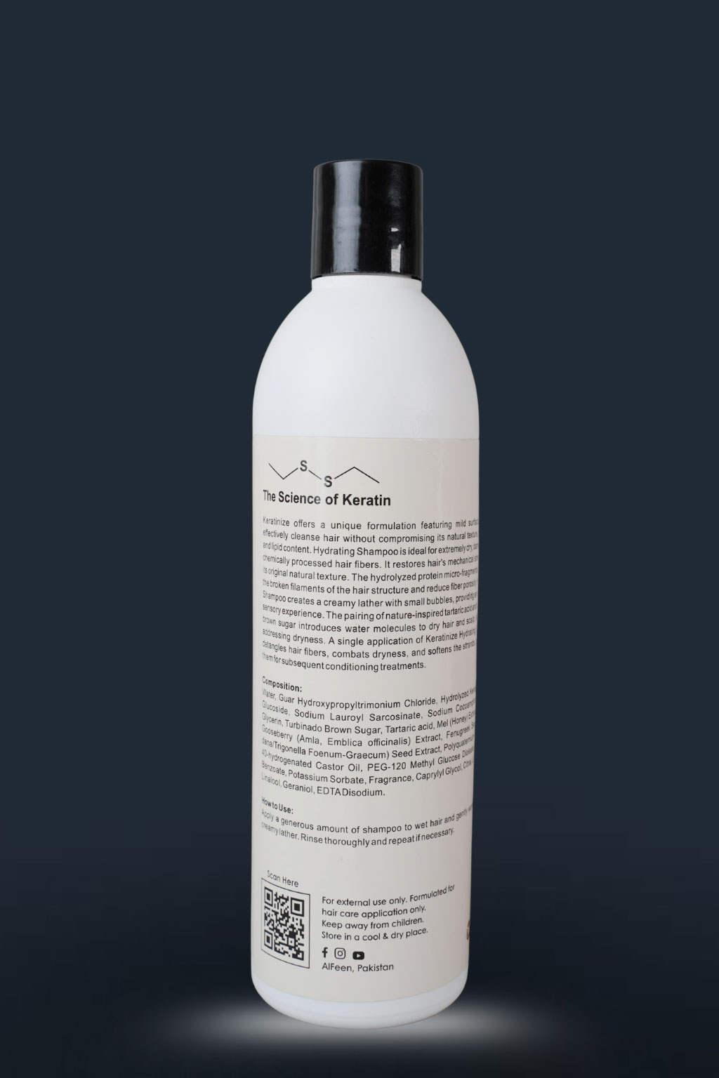 A single application of Keratinize Hydrating Shampoo effectively detangles, aligns the fibers, and makes it easier to comb wet or dry hair. The unique formula features gentle surfactants that clean hair without stripping its natural texture, proteins, or lipids. Hydrating ingredients are added based on their ability to retain water.